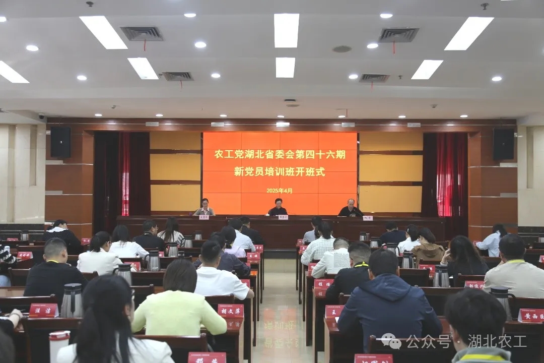 2025年4月15日上午,农工党湖北省委会第四十六期新党员培训班开班仪式在湖北省社会主义学院举行。农工党湖北省委会专职副主委黄惠宁、湖北省社会主义学院党委委员、副院长杨震出席开班仪式并讲话,省委会组织部部长宋亚琼主持开班仪式,来自全省基层组织的60余名新党员参加开班仪式。永业行助理总裁兼鄂东区总经理徐宇初、资源利用事业群业务中心总经理金涛、投资金融事业群研发中心总经理范丽邦作为新党员代表参加培训。